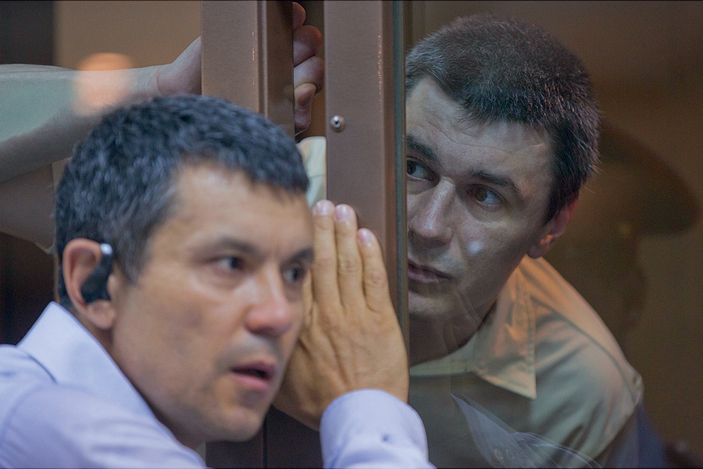 Десять подсудимых в стеклянном «аквариуме», где во время кассации по второму делу ЮКОСА сидели Михаил Ходорковский и Платон Лебедев