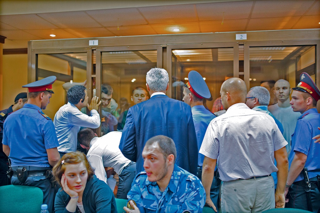 В перерывах между судебными заседаниями у «аквариума» выстраивается очередь из адвокатов, желающих пообщаться со своими подзащитными