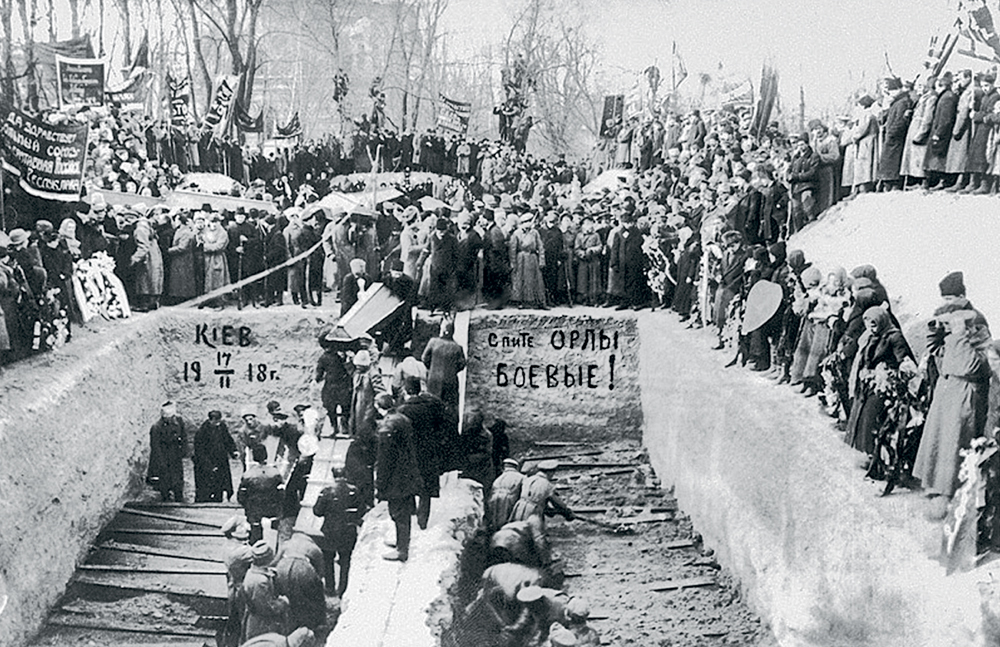 Похороны в братской могиле 750 участников восстания в Киеве, разгромленного частями Киевского военного округа, верными Временному правительству, и воинскими подразделениями Украинской Народной Республики. Киев, 17 февраля 1918 г. /фото: частная коллекция