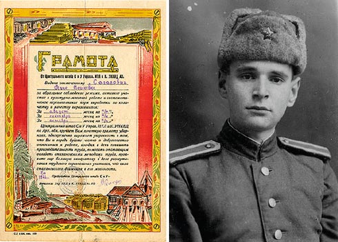 1. Грамота, выданная Н. Сагалович в лагере 2. Юрий Сагалович. 1944 г. (Из личного архива Юрия Сагаловича)
