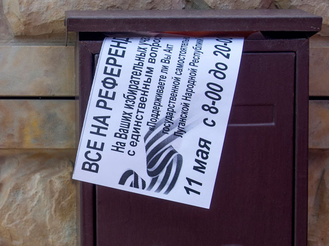 В соседней Луганской области никакого фальстарта не было. Там представители Луганской народной республики сообщили, что в воскресенье будет организован подвоз избирателей на участки, а последний соцопрос показал, что 83% поддерживают независимость.