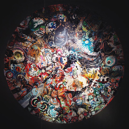 Посреди галереи стоит большой деревянный агрегат. Один художник, как белка, ходит внутри большого колеса, которое с помощью приводного ремня заставляет вращаться круглый стол-холст: вокруг круга сидят остальные художники и раскрашивают медленно уезжающую из-под их кисточек поверхность, которая через несколько часов и несколько десятков циклов вращения по необходимости превращается в эффектное, по виду неоэкспрессионистское, густо проработанное тондо за неопределенным авторством. Но живописных амбиций у «желатинов» нет, они всего лишь придумали структуру, механизм. Правда, то, как структура устроена, определяет результат. Влияет на дело и кастинг. Среди тех, кто был приглашен к участию, много живописцев старшего поколения (тех, кто начинал в 1990-е, в многодельный, насыщенный образами и рукотворной ловкостью постмодернистский период расцвета галерей) и много веселой, не чуждой ручного труда молодежи (Алиса Йоффе, Анастасия Рябова, дуэт «ЕлиКука», Ирина Корина и другие). В списке числится и знаменитый своим пастозным мазком Зураб Церетели («Приходил, но только смотрел», — говорят работники «Солянки»), а также парочка малоизвестных на «актуальной» сцене членов Союза художников.