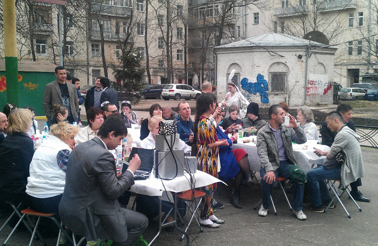 — Это и есть эксперимент. Мы взяли этническое кафе, хозяин — узбек. Он был заинтересован в лояльности местных жителей, потому что поступало много жалоб. Кафе — это ведь всегда шум, печка работает, пьяные братания или драки... Потом пришли к совету собственников дома. До интеграции им мало дела, но и у них был свой интерес: хотели возродить традиции совместных дворовых субботников и посиделок — а тут мы со своим проектом. Узбекская культурная автономия тоже заинтересована в расширении площадок для диалога.