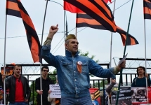 Часть лозунгов адресована журналисту Аркадию Бабченко. "Бабченко - либеральный журналист - хуже, чем в желудке глист!" - скандировали участники митинга.