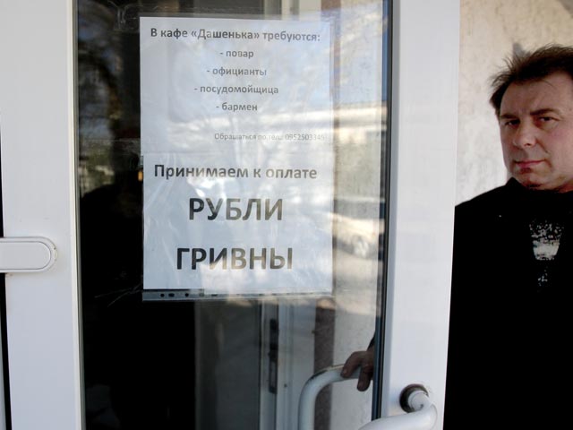 Тем временем по почтовым ящикам крымчан продолжают разносить листовки-разъяснения от Банка России. Как объясняет "Комсомольская правда", с 1 июня в магазинах должны исчезнуть двойные ценники в рублях и гривнах, расплатиться можно будет только рублями. Купить или продать гривну можно будет по рыночному курсу в банках, как и другую иностранную валюту. Банки также обязаны продолжить выполнять свои обязательства по вкладам в гривне.