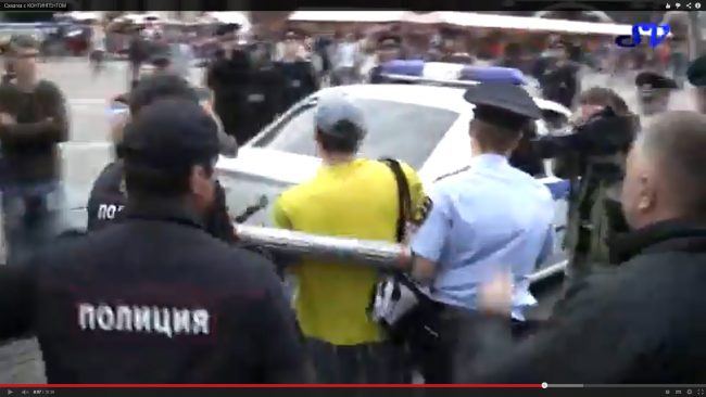 Еще хотел бы сказать об этом товарище, который уже дважды меня задерживает за абсолютно законный пикет. Я собираюсь подавать жалобу на него, так как у меня есть с собой и видеодоказательства, и свидетели того, что имело место воспрепятствование абсолютно законному проведению одиночного пикета даже в рамках закона 54, не говоря уже о 31-й статье. Даже не с той целью, чтобы его привлечь в рамках статьи 149 Уголовного кодекса о том, что должностное лицо с использованием служебных полномочий препятствует проведению пикета (хотя хотелось бы). А с тем, чтобы показать, что его действия полностью подпадают под эту статью, что будет обращение и в прокуратуру, и в суд, и в конце сделать ролик о работе сотрудников полиции, прокуратуры и судов, потому что я уверен, что его не привлекут, что там будет какой-нибудь абсолютно необоснованный бред. Цель — сделать как можно больше роликов, чтобы показать их тем людям, которые говорят, что у нас ни за что не сажают, мол, пишите жалобы, обращайтесь в суды. Таких людей по-прежнему много.
