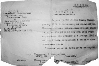 221 день провела моя прабабушка в камере внутренней тюрьмы. Согласно копии справки № 20664, выданной Управлением НКВД по Калининской области от 29 марта 1939 года, Соловьева Екатерина Ивановна «с 21/VIII.38 года содержалась под стражей и 29 марта 1939 года из-под стражи освобождена в связи с прекращением дела».
