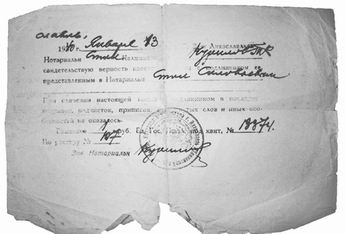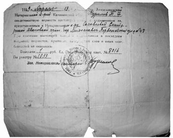 [11] Справка, заверенная нотариусом Куриловым В. П. и гербовой печатью.