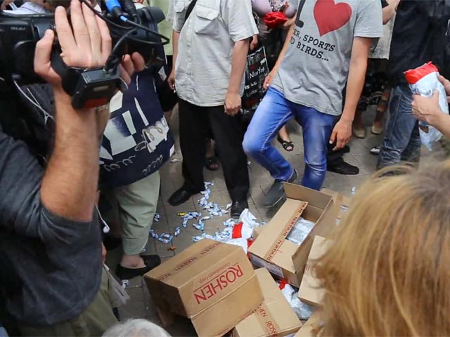 Кто-то из толпы говорил, что, несмотря на производителя конфет, их все же нужно раздать детям. "Мы курили в войну немецкие сигареты. Какая разница?" - заявил ветеран Второй мировой войны, оказавшийся в толпе активистов. В итоге, судя по фотографиям и видеозаписи, опубликованной в Сети коробки и пакеты с конфетами были раздавлены женщинами и мужчинами, собравшимися на площади.