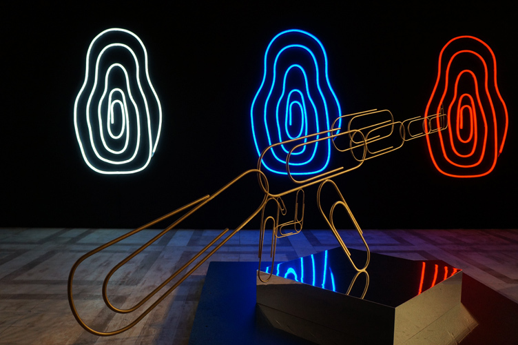 Дипломы совершенно разные. Среди представленных на выставке работ есть и материализовавшиеся в буквальном виде «духовные скрепы» (Григорий Сельский), и история про олимпийских болельщиков (Юлия Абзалтдинова), и абстрактная живопись на бумаге, оставшейся от оракала (Олег Устинов), и история слуг и хозяев (Лилия Ли-ми-ян), и визуализация очереди, вдохновленная произведением Владимира Сорокина (Саша Пирогова).