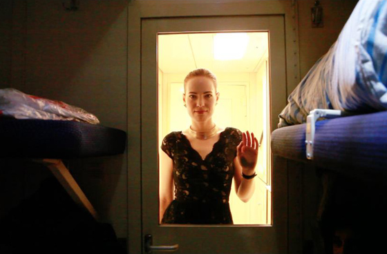 Анастасия Млеко. АРХТП. 2014. Видео-инсталляция Один из самых интересных проектов — у Анастасии Кузьминой из мастерской Сергея Браткова, для которого это первый выпуск. Художница оборудовала небольшой зал, где на трех экранах показывалось видео. Сюжет довольно прост: в новогоднюю ночь Кузьмина совместно со своими друзьями отправилась на поезде из Москвы в Петербург. В плацкартном вагоне они развесили гирлянды (их дублировала специальная подсветка в комнате, где показывалось видео), раздали пассажирам бенгальские огни и вообще устроили праздник. В какой-то момент действие все больше убыстряется, люди, случайно оказавшиеся в этой ситуации, начинают подыгрывать художнице. Все это напоминает советское кино 1970—1980-х, вроде фильмов Рязанова и Михалкова. И если верно, что, как говорят, страна в социальном и культурном плане идет куда-то в похожем направлении, то эстетически именно такого рода работы могут что-то рассказать в будущем о нашей нынешней жизни.