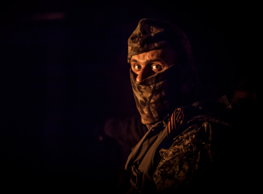 Ополченцы, как правило, уходят в ночь, на задание, группами по 10 человек. «Я даже не знаю, почему началась эта война, но ее надо довести до конца. Они, как и мы, готовы на все — будет бойня», — это, улыбаясь голубыми глазами, говорит Араб, пророссийский «снайпер из Одессы». Биография этих людей зачастую состоит из одного-двух слов, которые одним говорят, что ты — герой, а другим — что мишень. Настоящие имена называть запрещено.