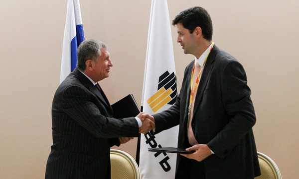«Роснефть» и BPO Оil International Limited. Фото: rosneft.ru Комментарий редактора: Как сообщает РИА Новости со ссылкой на представителя «Роснефти», на момент сделки сумма предоплаты составила два миллиарда долларов и со временем ее объем будет увеличиваться. При этом в организации предоплаты приняли участие восемь ведущих международных банков. Кроме того, BP, владеющая 19,75% «Роснефти», в следующем году рассчитывает выдвинуть второго кандидата в совет директоров российской компании. Об этом рассказал президент BP Роберт Дадли, который на данный момент является единственным представителем британской компании в «Роснефти». «Роснефть» — лидер российской нефтяной отрасли и одна из крупнейших публичных нефтегазовых компаний мира. Основными видами деятельности компании являются разведка и добыча нефти и газа, производство нефтепродуктов и продукции нефтехимии, а также сбыт произведенной продукции.