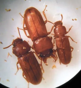 Такая ситуация характерна не только для тараканов. Группа японских и британских исследователей под руководством профессора университета Окаямы (Okayama University) Кенсуке Окады (Kensuke Okada) и профессора Дэвида Хоскена (David Hosken) из университета Экстера (University of Exeter) изучала конфликт полов у рогатых мучных хрущаков Gnatocerus cornutus. Статью они назвали «Самки предпочитают любовников, а не бойцов». У самцов G. cornutus мощные челюсти (мандибулы) и они сражаются за самку. Иногда победитель собирает целый гарем, который приходится охранять. Самец с большими челюстями обычно побеждает. Размер мандибул наследуется, сыновья победителя тоже выигрывают турниры. К сожалению, дочери хорошо вооруженных отцов несколько маскулинизированы: у них изменяется форма тела и в брюшке остается меньше места для яиц, но такова цена победы.