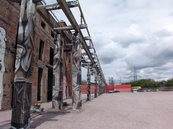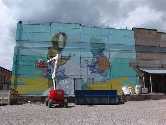 Нистратова: Все наши художественные процессы происходят совместно с заводом. Для рабочих это очень непросто, для нас тоже. Мы устраивали специальные встречи с работниками завода: краткая история кластеростроения и стрит-арта. Музей стрит-арта — это еще и социальный проект. Есть такое слово «ревитализация». Оно ужасное, но это так и есть. Когда на грязной стене появляется рисунок, все выглядит как-то иначе. Ездить каждый день на Индустриальный проспект работать на завод и ездить каждый день работать на завод и в музей — это совершенно разные вещи. Рабочие, которых здесь около трехсот, следят за тем, что здесь происходит, делают фотки на мобильный.