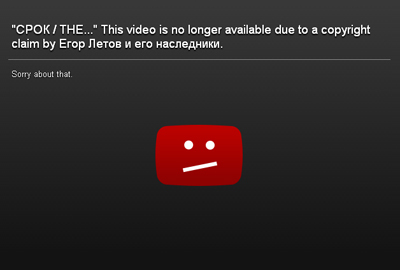 При попытке открыть страницу «Срока» на сайте YouTube.com выдается сообщение о том, что видео недоступно из-за претензии по авторским правам, предъявленной наследниками Егора Летова.