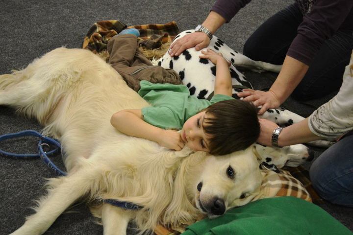 Когда узнали диагноз, легче не стало, потому что найти специалистов, которые помогли бы реабилитировать ребенка, оказалось чрезвычайно сложно. Как многие родители детей-аутистов, Надежда занялась самообразованием. Читала медицинские статьи, проходила обучающие курсы, искала информацию об альтернативных способах лечения. Так узнала о канистерапии — усиливающем развитие личности методе, в котором роль мотиватора играет специально обученная собака. Одно из упражнений на занятиях по канистерапии выглядит так: ребёнка обкладывают собаками, и какое-то время он просто лежит, окруженный их теплом, давлением их тел. По мнению канистерапевтов, это помогает аутисту почувствовать себя в пространстве и восстановить моторные дефициты, что, в свою очередь, способствует появлению речи и приобретению коммуникационных навыков.
