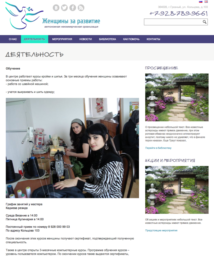 Дата14.07.2014АвторОлег ГантИсточникТеплицаСохранённая копияInternet ArchiveOriginal MaterialShow translationСайт для НКО «Женщины за развитие» Некоммерческая организация «Женщины за развитие» предоставляет доступ к достоверной медицинской и психологической информации о здоровье женщин. Автономная некоммерческая организация «Женщины за развитие».