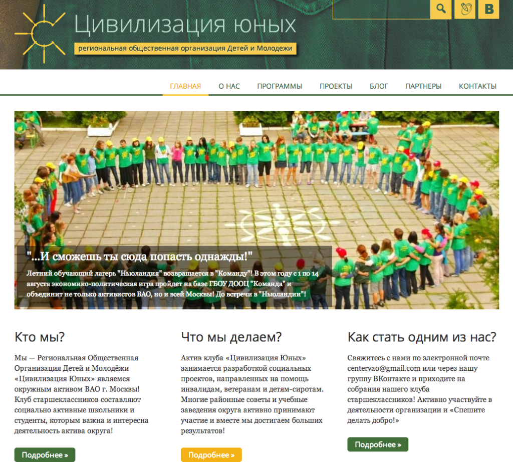 Сайт региональной общественной организации детей и молодежи «Цивилизация юных».