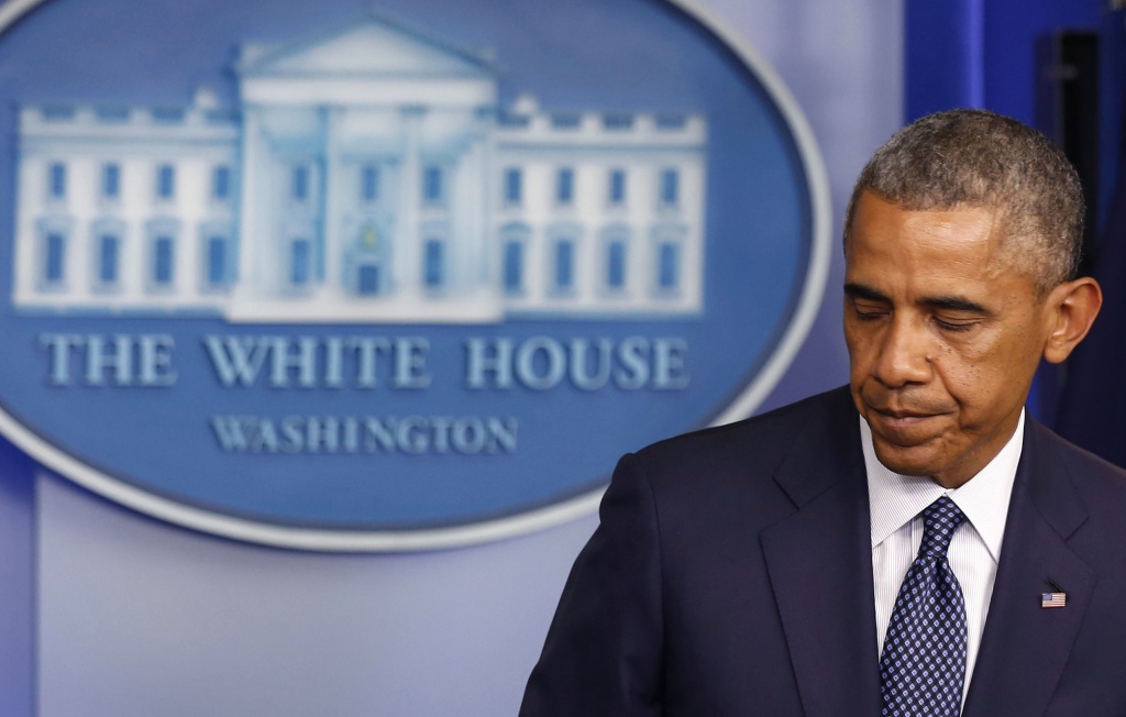 Барак Обама после брифинга, посвященного ситуации на Украине. 16 июля 2014 г., Вашингтон/ Фото: REUTERS/Larry Downing