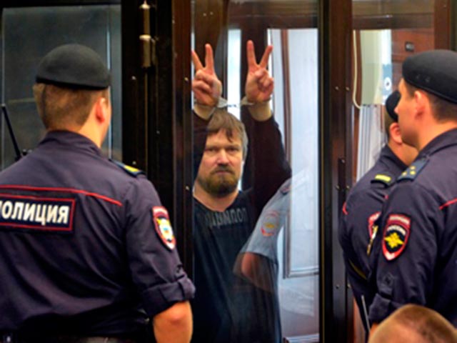 Удальцов в зале суда выглядел бодро, но спокойно, позировал фотографам, улыбался, показывал приветственный жест - сжатую в кулак правую руку. Развозжаев приговор слушал, сидя в стеклянной клетке.
