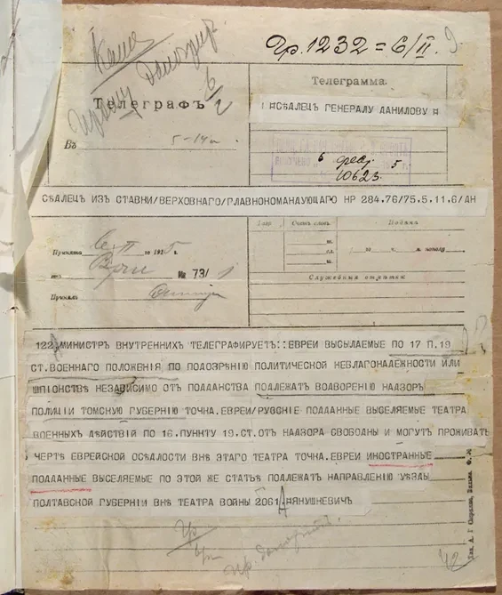 Против выселения евреев из Курляндии протестовал прибалтийский генерал-губернатор П.Г. Курлов, специально по этому вопросу ездивший в ставку Верховного главнокомандующего великого князя Николая Николаевича и убедивший его отменить свое распоряжение. В ходе нового немецкого наступления полномочия в вопросах высылки перешли к войсковым командирам, не имевшим ни желания, ни времени разбираться в этих вопросах: поэтому фактические депортации могли инспирироваться даже второстепенными чинами.