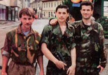 Один из лидеров донецких боевиков Игорь Гиркин, называющий себя Стрелковым, может быть причастен к гибели трех тысяч человек. Как сообщает "Эхо Москвы", боснийское издание Klix.Ba опубликовало фотографию, на которой молодой Гиркин запечатлен в камуфляжной форме с автоматом Калашникова в руках. Рядом с ним стоит еще один российский наемник и человек по имени Бобан Инджич.