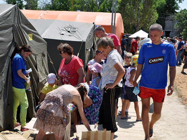 Людей обеспечивают всем необходимым - питанием, медицинской и психологической помощью, цитирует Дробышевского РИА "Новости". Для беженцев доставлено более 1,4 тысячи тонн гуманитарной помощи.