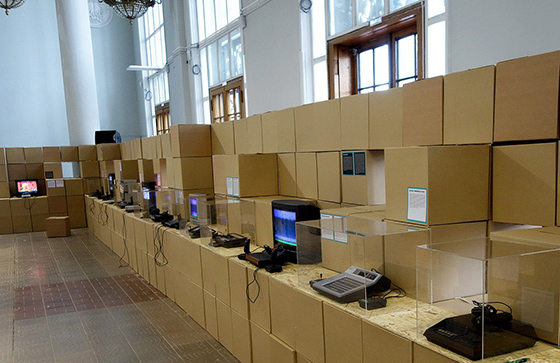 Июль 2014 г. Выставка «Игровая станция МКИ». Павильон № 26. Политехнический музей. Экспозиция обыгрывает эстетику 1980-1990-х годов К концу советской власти ВДНХ превратилась в довольно эклектичный и очень пестрый ансамбль, а в его основе лежал неистребимый парадно-помпезный план сталинской эпохи. Именно архитектура выставки образца 1954 года, очень быстро потерявшая в свое время право на существование, и стала почвой для дальнейших реконструкций и стилистических напластований. Как показывает история ВДНХ, наука обживания и сосуществования современности с интерьерами имперского сталинского ансамбля была хорошо усвоена за эти десятилетия. Нынешние события на ВДНХ наводят на мысль, что о критическом переосмыслении этого стилистического соседства речи даже и не идет.