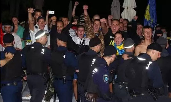 На концерте Ани Лорак в Одессе. Фото: segodnya.ua Комментарий редактора: Само выступление украинских националистов вполне можно рассматривать как событие «в духе времени». От недавней истории со «львовскими мышами» его отличает лишь культурный уровень исполнителей. Здесь интересна крайне жесткая реакция властей. На видеороликах беспорядков в одесском Ibiza Club, выложенных в интернете, мелькают бойцы спецназа, одетые в штурмовые каски, бронежилеты и вооруженные дубинками. Слаженность их действий говорит о том, что беспорядки в Ibiza Club ждали и власти были к ним подготовлены. Жесткий отпор возмутил радикалов — в тот же вечер они забросали яйцами ближайшее к клубу отделение милиции и призвали своих сторонников в понедельник прийти с «коктейлями Молотова» и другим «протестным инвентарем» к областному УВД. Первыми на призыв «откликнулись» работники одесской областной прокуратуры — 4 августа там открыли уголовное производство в связи с превышением полномочий сотрудниками милиции во время инцидента на концерте Ани Лорак. Милиционеров обвиняют в том, что они чрезмерно использовали силу, били лежащих протестующих, в том числе, резиновыми дубинками по головам.
