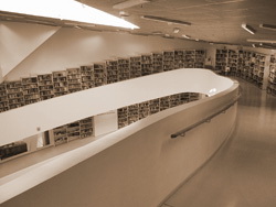 Сильное впечатление производит филиал городской библиотеки – воздушное трехэтажное здание, в котором нет видимых лестниц и лифтов. Новая библиотека устроена так, что ты, не напрягаясь, по кругу без всяких ступеней поднимаешься вдоль доступных книжных полок, пока не оказываешься наверху, в зале для детей.