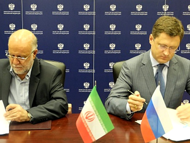Глава Минэнерго Александр Новак и министр нефти Ирана Бижан Намдар Зангане подписали Меморандум о взаимопонимании между правительствами двух стран сроком на пять лет. Документ закладывает основу для многомиллиардного пакетного соглашения в торгово-нефтяной сфере между Москвой и Тегераном.