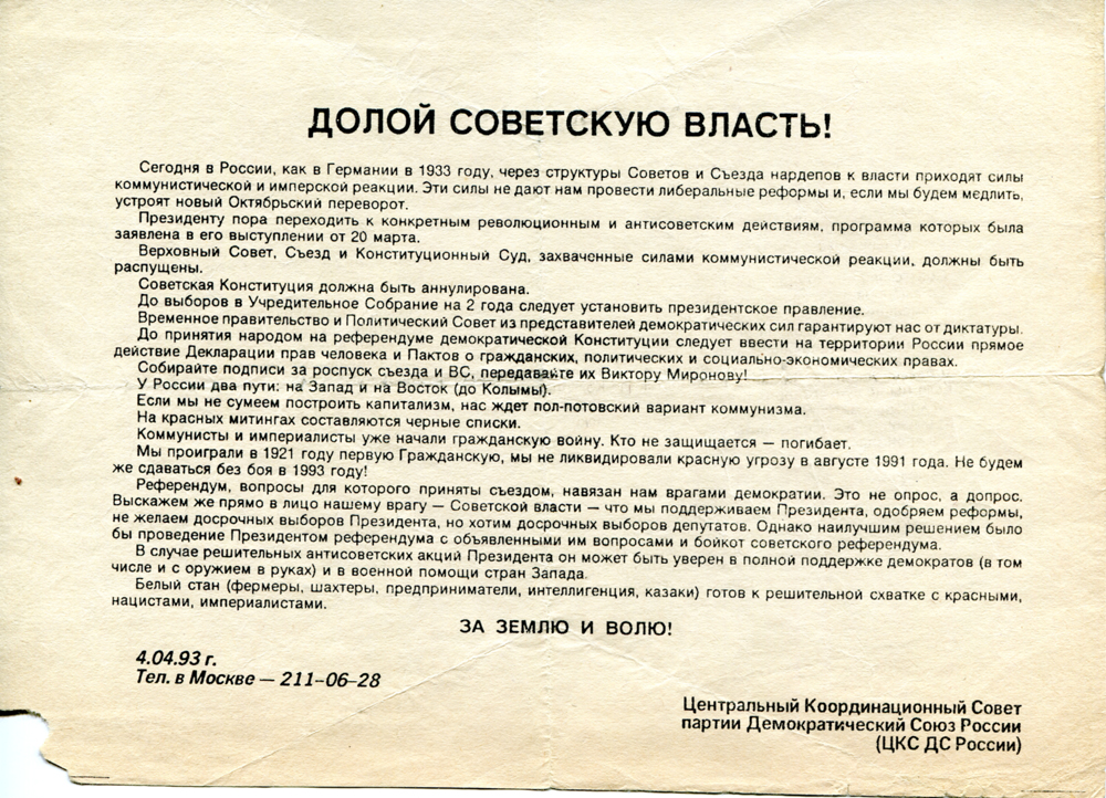 Моя квартира на Онежской стала местом, где прошел один из дней учредительного съезда. Пока у ДС не было денег, чтобы снять квартиру под штаб, у меня проходили и заседания, и собеседования для новых членов партии. Лера была очень дисциплинированным человеком, ни на каких дебатах она не позволяла себе переходить на ругань или повышать голос. Но один раз я видела, как она заплакала. Ее как раз выгнали с работы библиотекарем. В партии в конце восьмидесятых все было в порядке с деньгами за счет издания газеты, поэтому несколько функционеров начали получать зарплату. Они уделяли много времени партии и совсем не могли совмещать это с работой. А Новодворской координационный совет не утвердил оклад. Она, когда услышала это, заплакала от обиды и сказала: «И что же, мне теперь приемщицей в химчистку идти?» А совет решил, что обязанности, которые она на себя решила возложить, выходят за рамки деятельности партии. Но она потом их переписала, и ей все-таки утвердили оклад в 100 рублей.