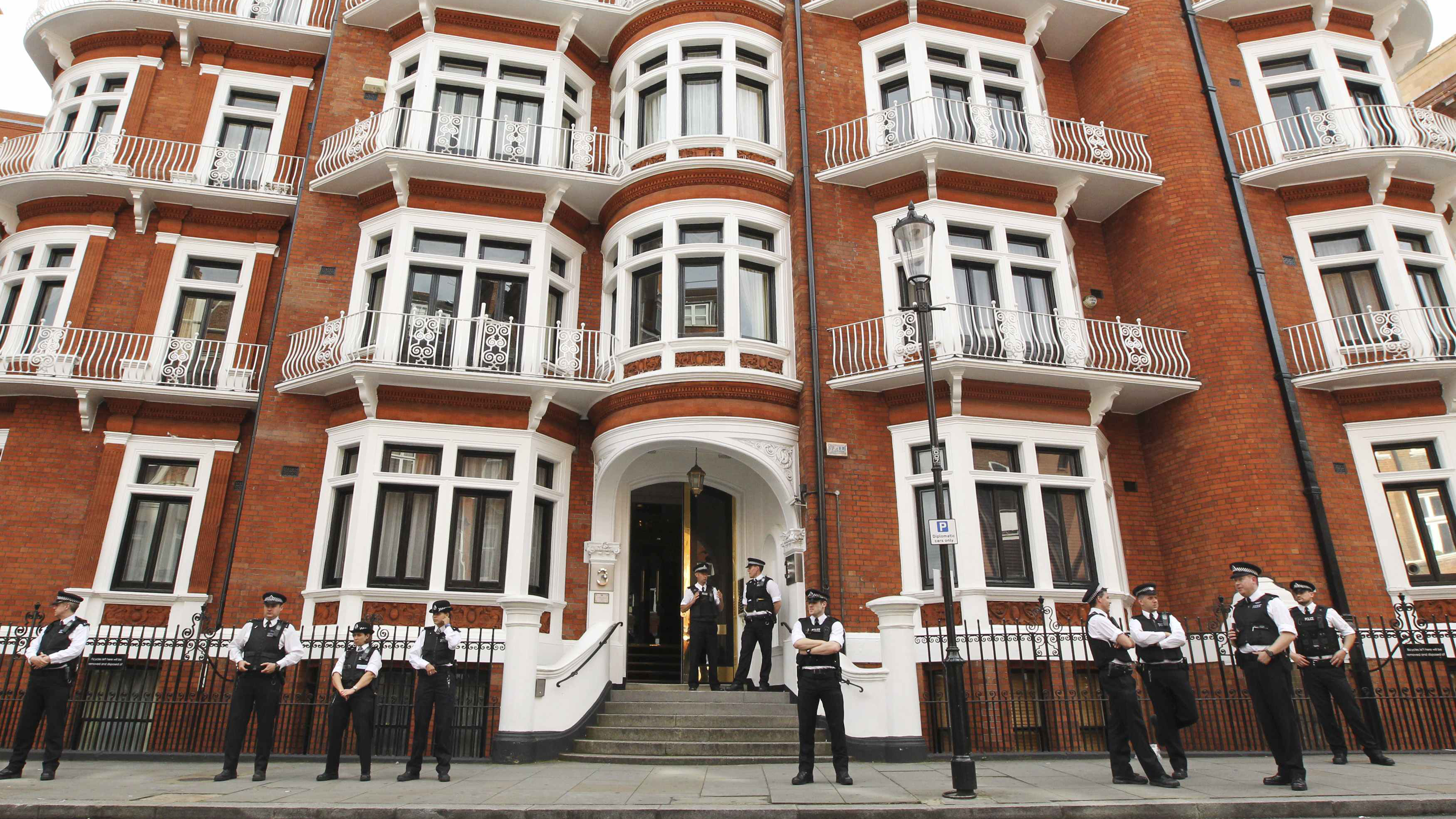 Эквадорское посольство в Великобритании находится под круглосуточной охраной британской полиции. Ассанж может быть арестован, даже если окажется в лифте, коридоре или вестибюле здания, в котором находится посольство. Эта часть здания не обладает дипломатическим иммунитетом. Все посольство размещается в небольшой квартире в здании, которое оно делит с посольством Колумбии. Полиция находится не только у входа в здание, но и внутри него. Британским налогоплательщикам "осада" Ассанжа уже обошлась за два года в шесть с половиной миллионов фунтов – девять тысяч фунтов в день. Высказывались предположения, что эквадорские власти могут тайно переправить Ассанжа в свою столицу Кито. Однако Майкл Биньон к возможности бегства Ассанжа из посольства относится скептически: