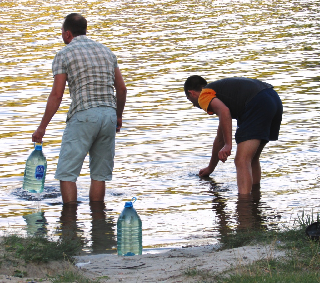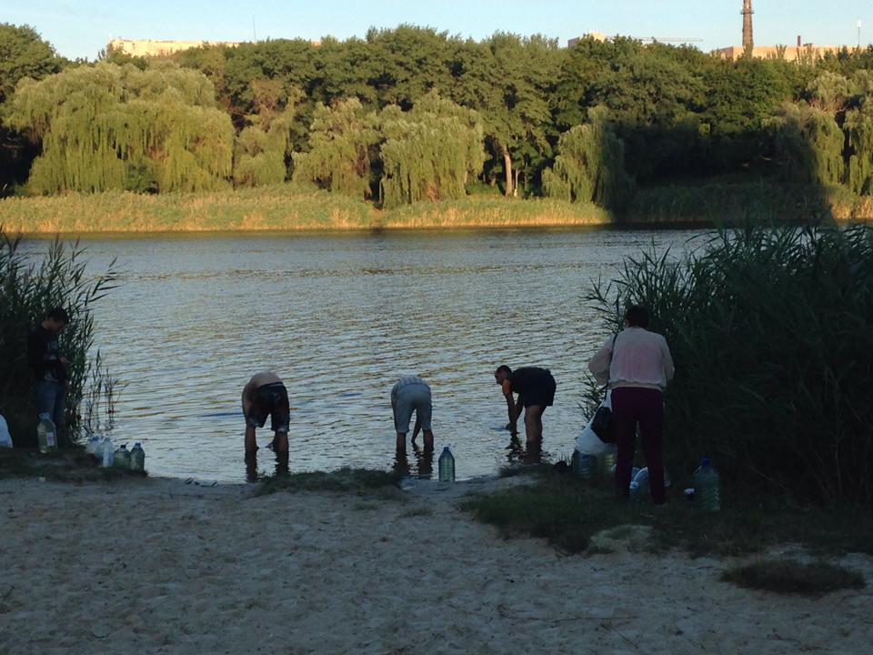 19 августа вода в Донецке так и не появилась, а к реке Кальмиус потянулись жители с пластиковыми бутылками, ванночками и вёдрами