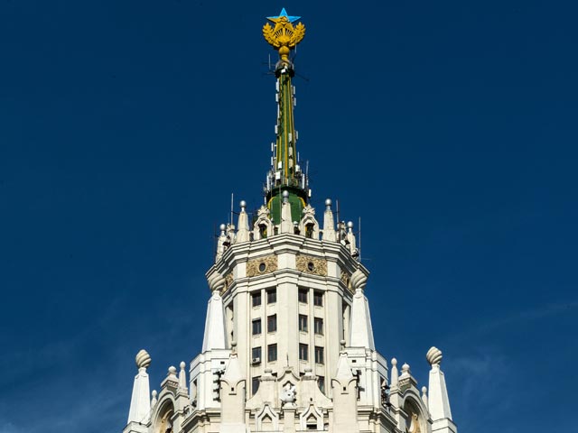 Полиция возбудила уголовное дело по статье "вандализм" в связи с инцидентом на шпиле высотки на Котельнической набережной в Москве - желтая звезда на нем оказалась наполовину окрашена в голубой, а сверху кто-то установил флаг Украины. Четверо подозреваемых с альпинистским снаряжением доставлены в отдел полиции Таганского района. В участии в акции подозревали украинского руфера - любителя городского альпинизма. Оскверненную звезду со скоростью, достойной борьбы с фашистскими граффити, закрасили, а на другой "сталинской высотке" на Комсомольской площади водрузили триколор.