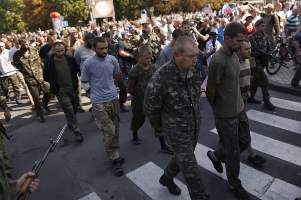 Интересно, что и Киев в этот день проэксплуатировал общеизвестный советский образ из той же войны: солдаты, прямо с праздничного парада уходящие на фронт, — это ведь тоже Сталин, только 1941 год, ноябрь. Обе стороны донецкой войны вдохновляются примерами из одного и того же источника просто потому, что других источников у советских людей нет, и, в принципе, несложно представить себе зеркальную ситуацию, когда уже по Киеву ведут пленных с поливалками, а по Донецку ополченцы идут парадом перед тем, как отправиться с праздничной площади на передовую. Этот день, 24 августа 2014 года, с кошмарной точностью показал, до какой степени одни и те же люди воюют друг с другом на донецком фронте. Люди одной культуры, люди одного языка, совершенно одинаковые люди, которые, конечно, уже никогда не станут братьями, но радоваться тут в любом случае нечему.