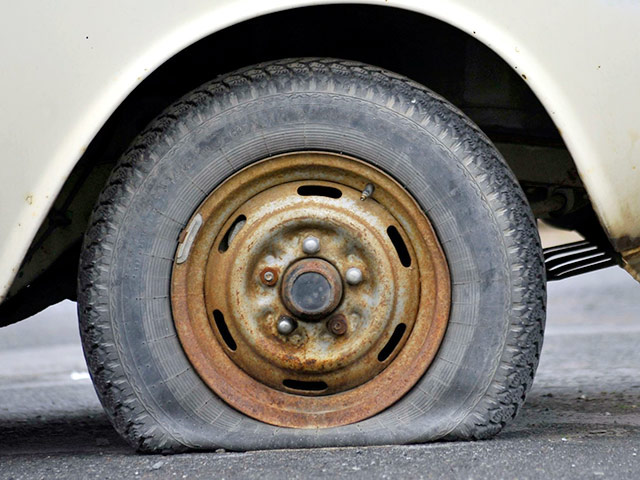 Иван решил не останавливаться, а доехал до ближайшего поста ДПС. По пути он увидел еще четыре машины с пробитыми колесами.