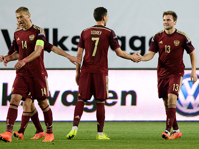 В первой игре после неудачного выступления на ЧМ-2014 дубль оформил нападающий Александр Кержаков (6' 12'), который стал лучшим бомбардиром в истории национальной команды. Также голами отметились защитники Сергей Игнашевич (41') и Владимир Гранат (81').
