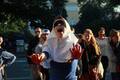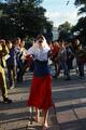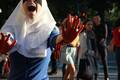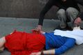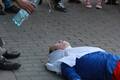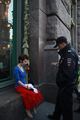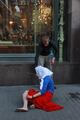 Петербургская активистка Кадо в пятницу вышла на Невский проспект в образе "ослепшей России с кровью на руках". Женщина в одежде цветов российского флага и с повязкой на глазах протягивала к прохожим "окровавленные" руки с георгиевскими лентами на запястьях и издавала громкий крик на одной ноте. Активистка повернула на Малую Садовую и упала у стены Елисеевского магазина. Приехавший полицейский помог Кадо подняться, записал ее личные данные и вызвал скорую помощь. Врачи вскоре отпустили активистку.