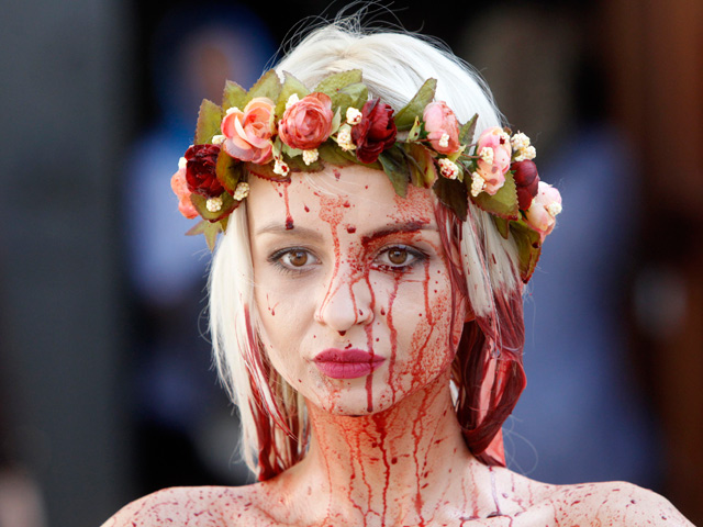 Участница движения Femen провела акцию на территории Киево-Печерской лавры. Девушка топлес вышла с ведром на площадь перед входом в храм и дала облить себя красной жидкостью в знак протеста против войны на Украине, в ходе которой, как считают активистки движения, Россия упивается "жертвенной кровью украинцев", приводит портал "Интерфакс-Религия" сообщение пресс-службы Femen.
