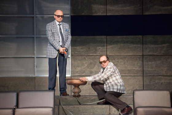 Принцип «трех единств», попранный Пушкиным, вновь восстановлен в своих правах. Весь пространственно-временной континуум сосредоточен теперь в безликом телепавильоне (сценограф Лариса Ломакина), который даже и не думает притворяться Сопотом или Кремлем. Чтобы перейти российско-польскую границу, не нарвавшись на погранцов, достаточно пустить такой, например, титр: «Брат Пушкина разговаривает с братом Пушкина по скайпу». Переходя от дивана к дивану, Виктор Вержбицкий будет поочередно подавать реплики то за политэмигранта Гаврилу Пушкина, то за верного сторонника Кремля Афанасия Пушкина. Именно ремарка становится главной героиней и главным строительным материалом богомоловского универсума.