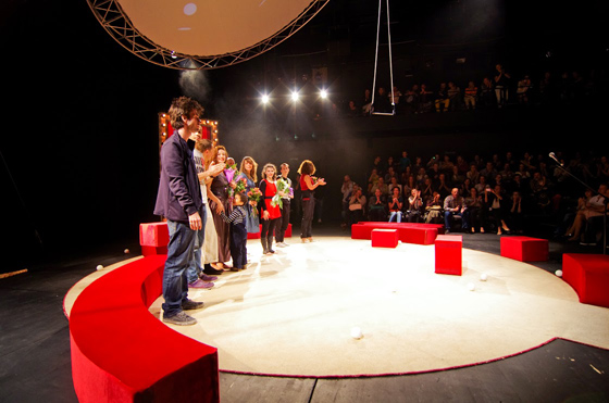 В Большом зале Центра имени Мейерхольда сыграли премьеру циркового спектакля «360 градусов». То есть — действительно циркового: режиссер Дмитрий Филиппов переоборудовал сцену ЦИМа в манеж и запустил туда цирковых артистов — воздушную гимнастку, эквилибриста, дрессировщика, жонглера, танцовщицу и факира-эксцентрика. В каком-то смысле день премьеры «360 градусов» можно считать днем рождения нового для России синтетического жанра — когда то ли цирк приходит в театр, то ли театр вбирает в себя цирк. По просьбе COLTA.RU драматург проекта Любовь Мульменко рассказала о прибытии в Москву молодого российского cirque nouveau.