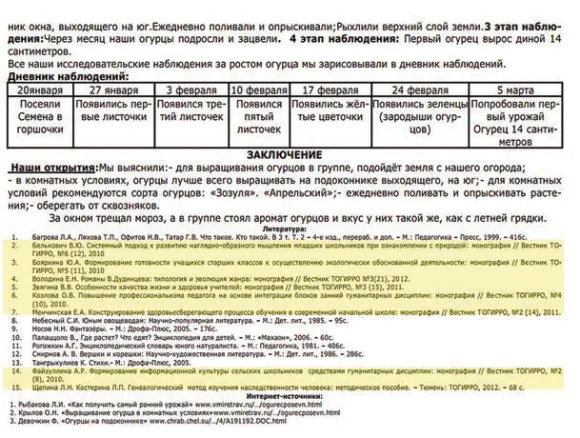 В тексте ни одна не упоминается. Поэтому трудно определить, на каком этапе выращивания огурцов дети использовали, например, сведения из работы Е.Н. Володиной «Романы В. Дудинцева: типология и эволюция жанра», опубликованной в «Вестнике ТОГИРРО».