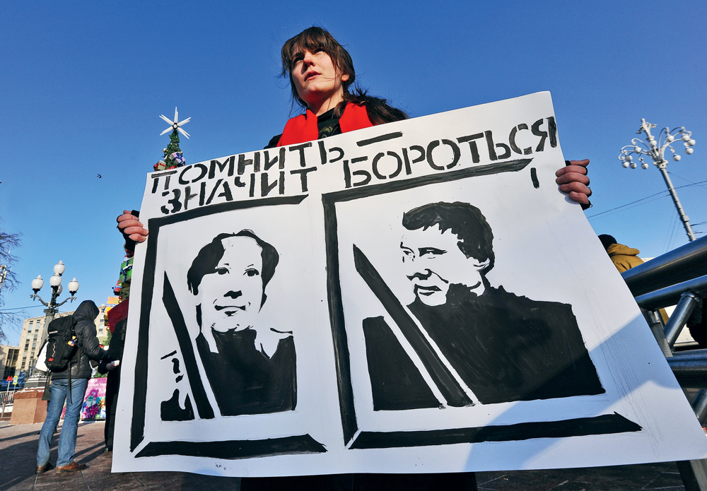 Митинг на Гоголевском бульваре памяти Станислава Маркелова и Анастасии Бабуровой. После их убийства прошло уже пять лет. Москва, 19 января 2014 г. /фото: Сергей Киселев/Коммерсантъ