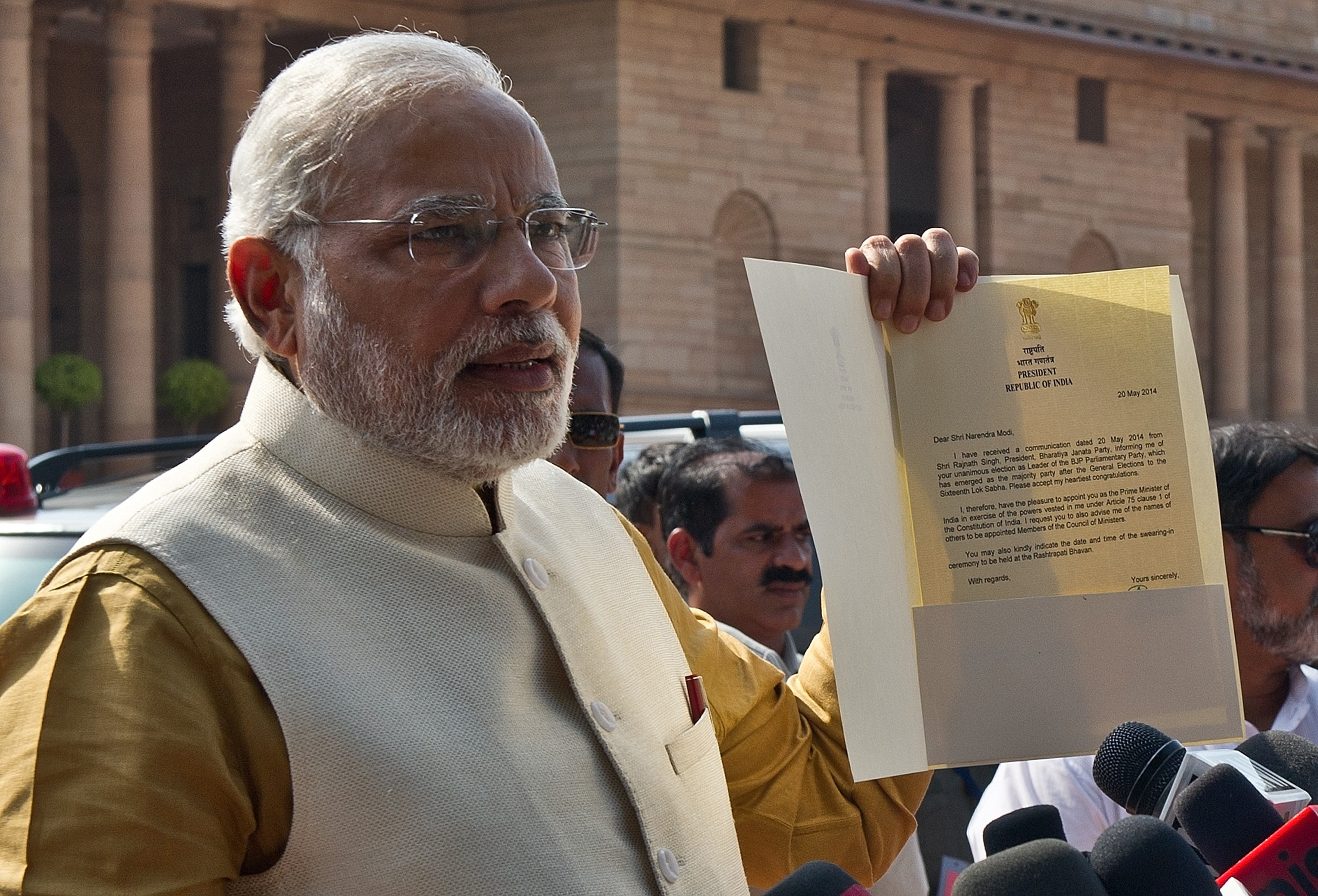 Моди подмел дороги в бедном квартале Дели при представлении пятилетней программы сегодня, 2 октября, в день рождения Махатмы Ганди, руководителя движения за независимость Индии.