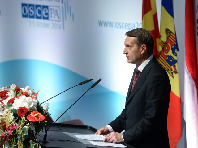 Спикер Государственной думы Сергей Нарышкин выступил на сессии Парламентской Ассамблеи ОБСЕ, которая прошла 3 октября в Женеве. В своей речи глава нижней палаты российского парламента рассказал о влиянии США на европейские власти, заботе России о "братском украинском народе" и "грязной убийце" Надежде Савченко.
