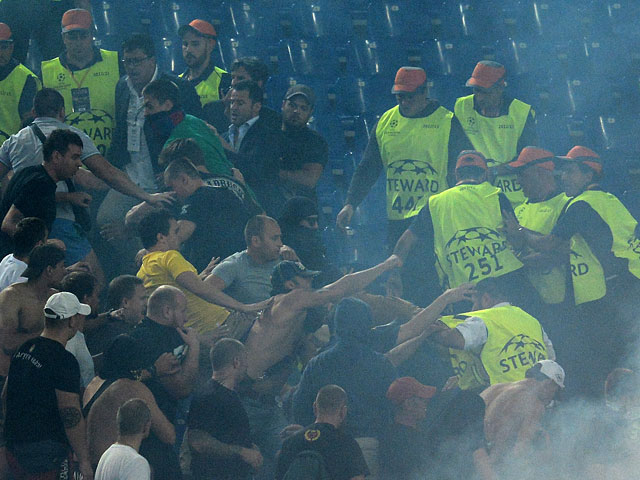 Кроме того, некоторые фанаты армейского клуба попытались прорваться на соседний сектор, в результате чего завязалась драка со стюардами, работающими на арене.