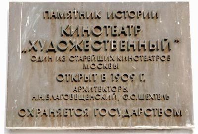 Кинотеатр «Художественный» был открыт на Арбатской площади в 1909 году. Первоначально он вмещал 400 человек, но со временем мест стало не хватать, и в 1912–1913 годах здание было перестроено в соответствии с проектом, предложенным архитектором Федором Шехтелем, вместительность зрительного зала возросла до 900 человек. В 1926 году в «Художественном» состоялась премьера фильма Сергея Эйзенштейна «Броненосец "Потемкин"».