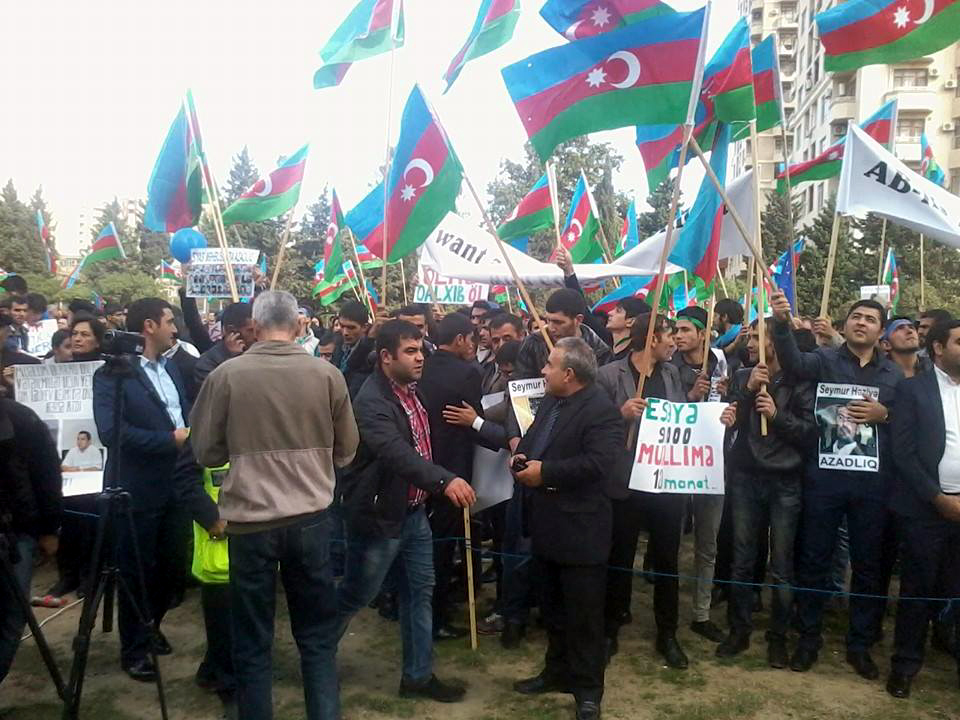 В Баку в воскресенье состоялся оппозиционный митинг с требованием отставки президента Азербайджана Ильхама Алиева и прекращения преследования правозащитников и гражданских активистов. Демонстранты также высказались за сближение Азербайджана с Евросоюзом и освобождение политических заключенных.